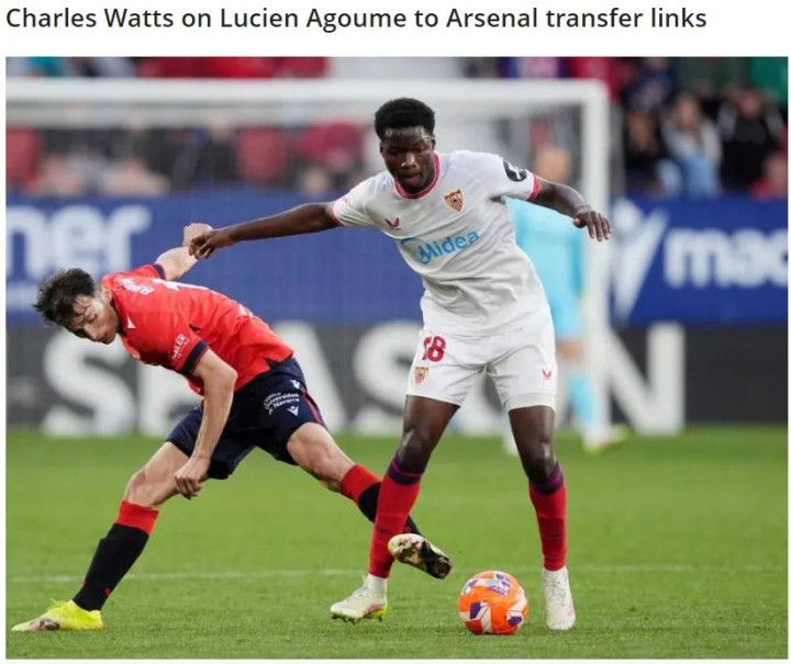 记者CWS在洞察越位的专栏中谈到了阿森纳和23岁的塞维利亚中场阿古梅的传闻。