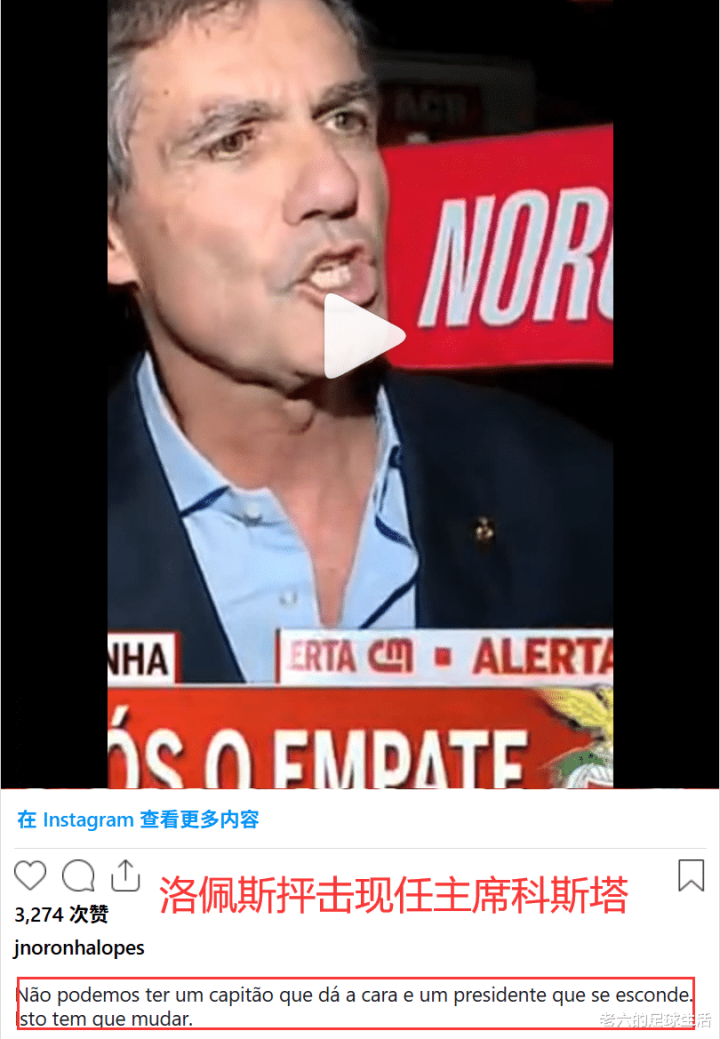 随着周末本菲卡在自己主场被圣克拉拉逼平之后,主席候选人之一洛佩斯直接在自己的社媒上抨击鲁伊·科斯塔。