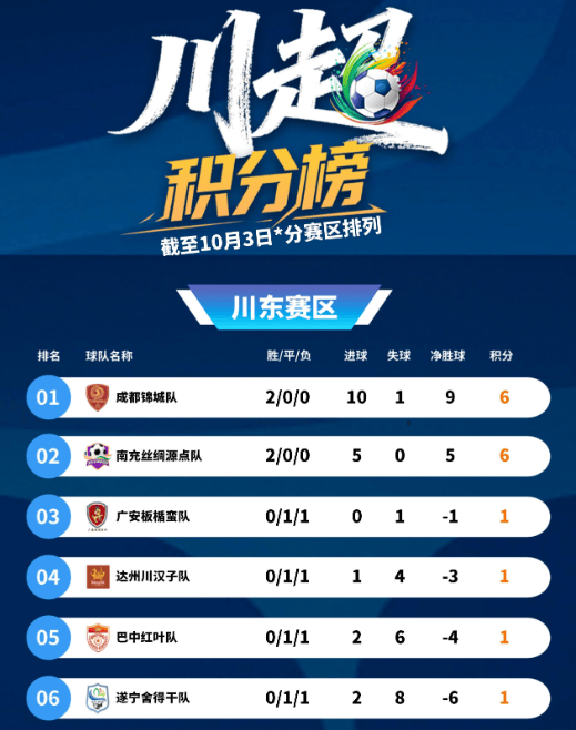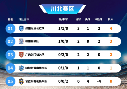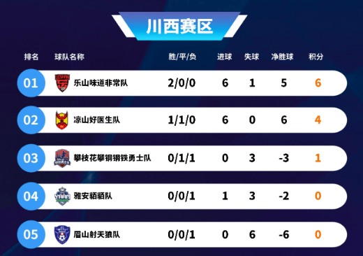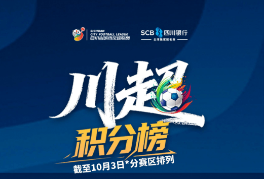 川超积分榜: 成都、自贡、乐山、绵阳分别位列各自赛区第一