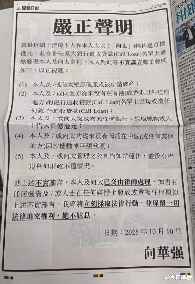 前几天,在网络上流传向家破产了,向华强发文澄清。