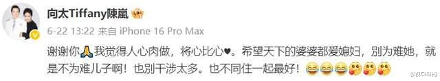 网友们纷纷夸赞向太有大智慧!她并不是高高在上无理取闹的婆婆。
