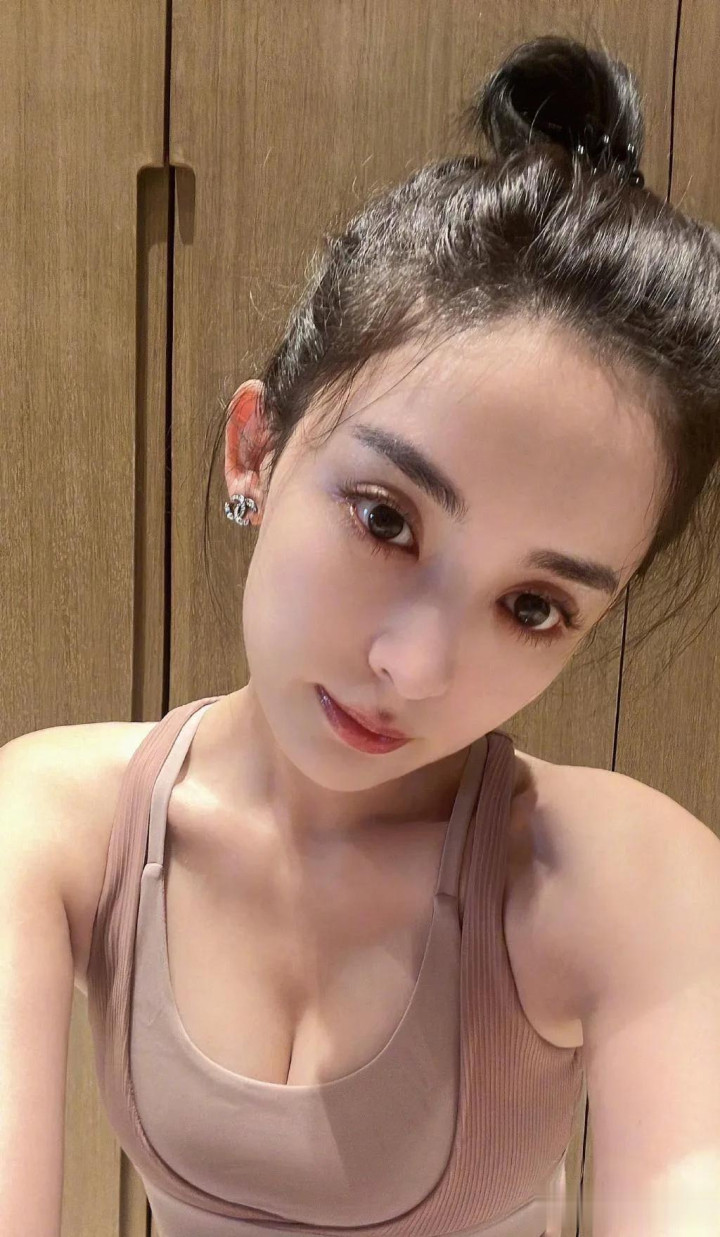 你看她搭的同色系吊带,面料软乎乎贴在身上,却把肩颈的薄削感衬得刚好;头发随便挽个丸子头,碎发垂在耳后,配着香奶奶耳钉,愣是把“居家休闲”穿出了“松弛贵气”——这哪是随便拍的日常,明明是把“舒适感”和“精致感”揉在了一块儿。